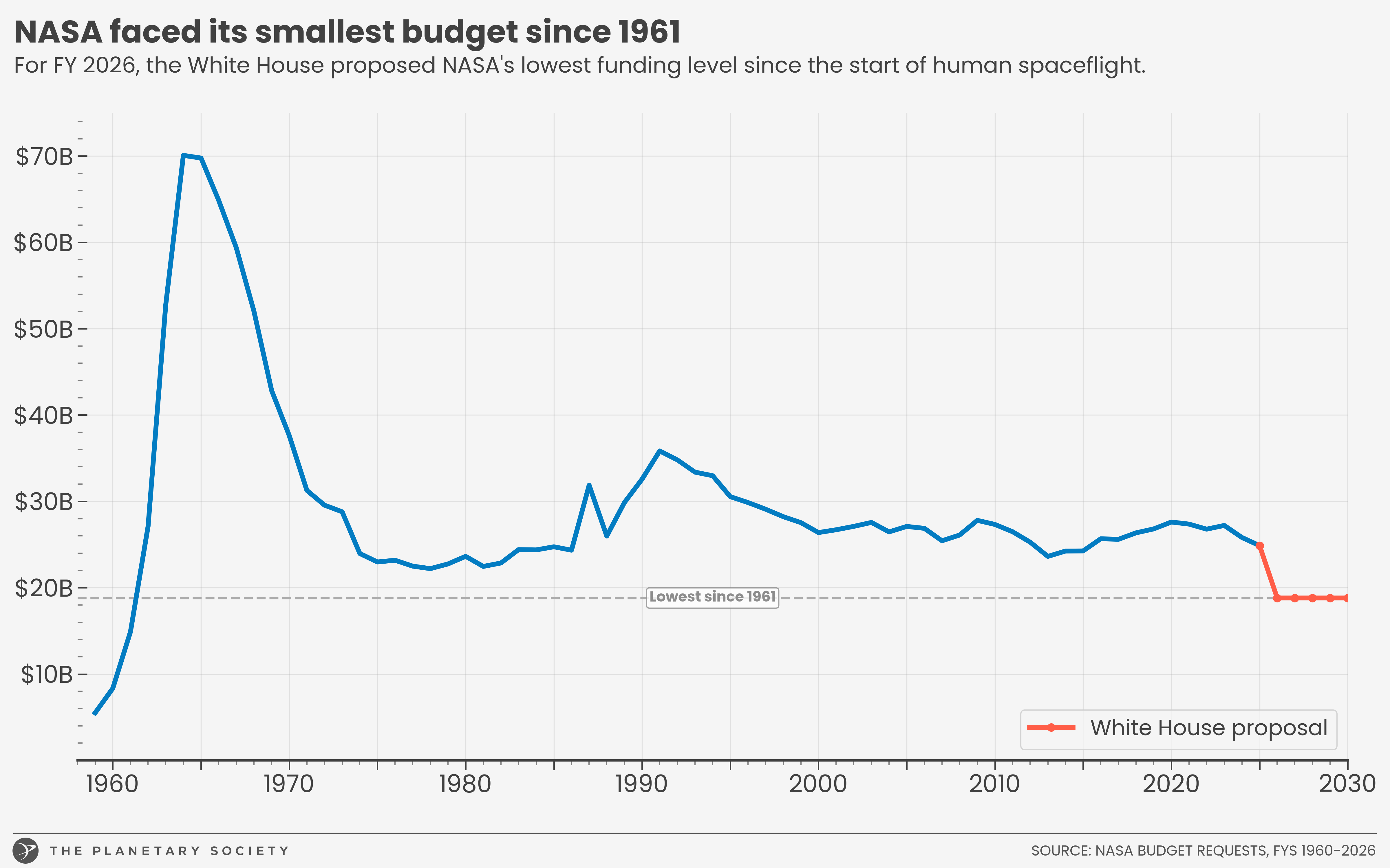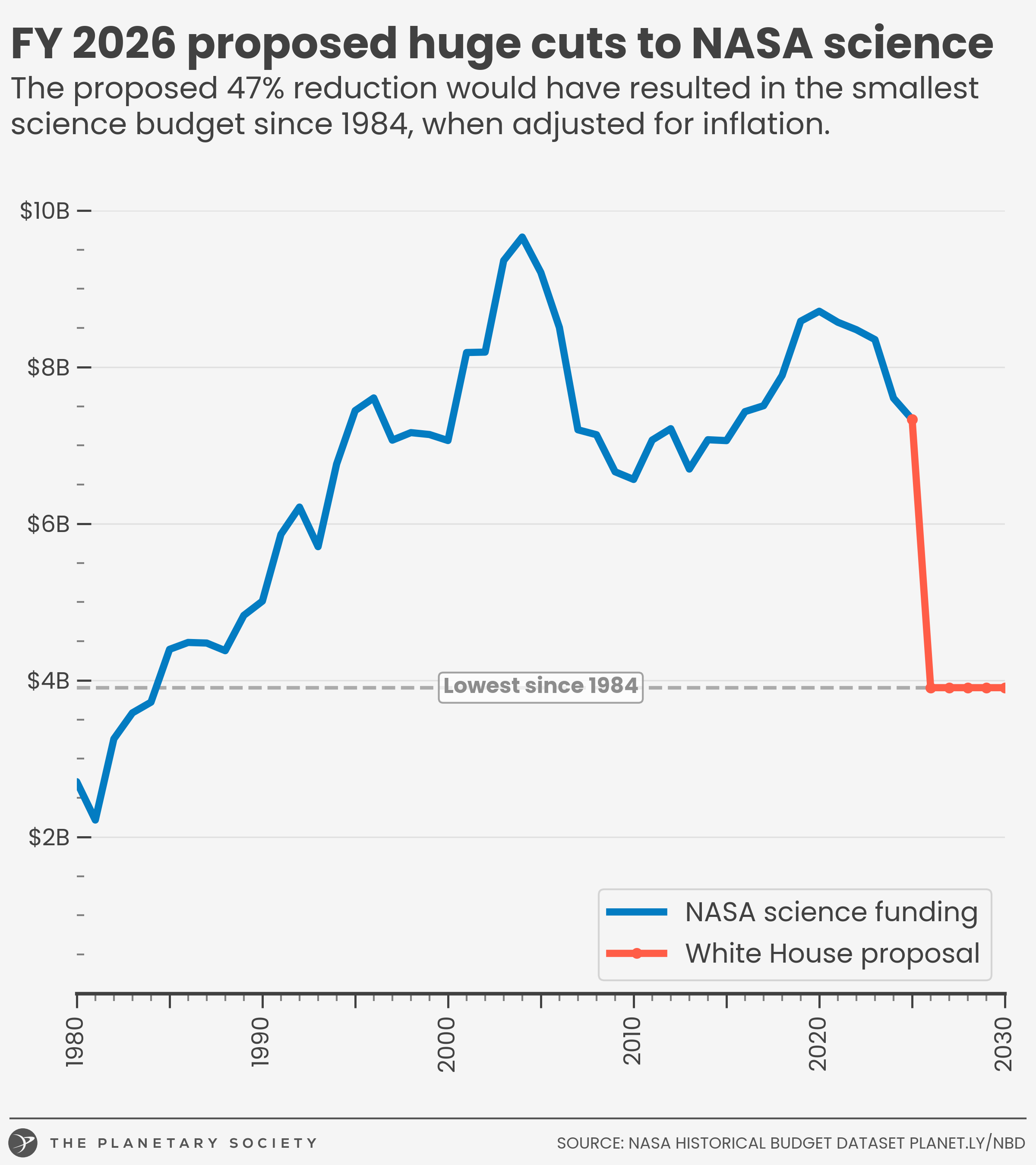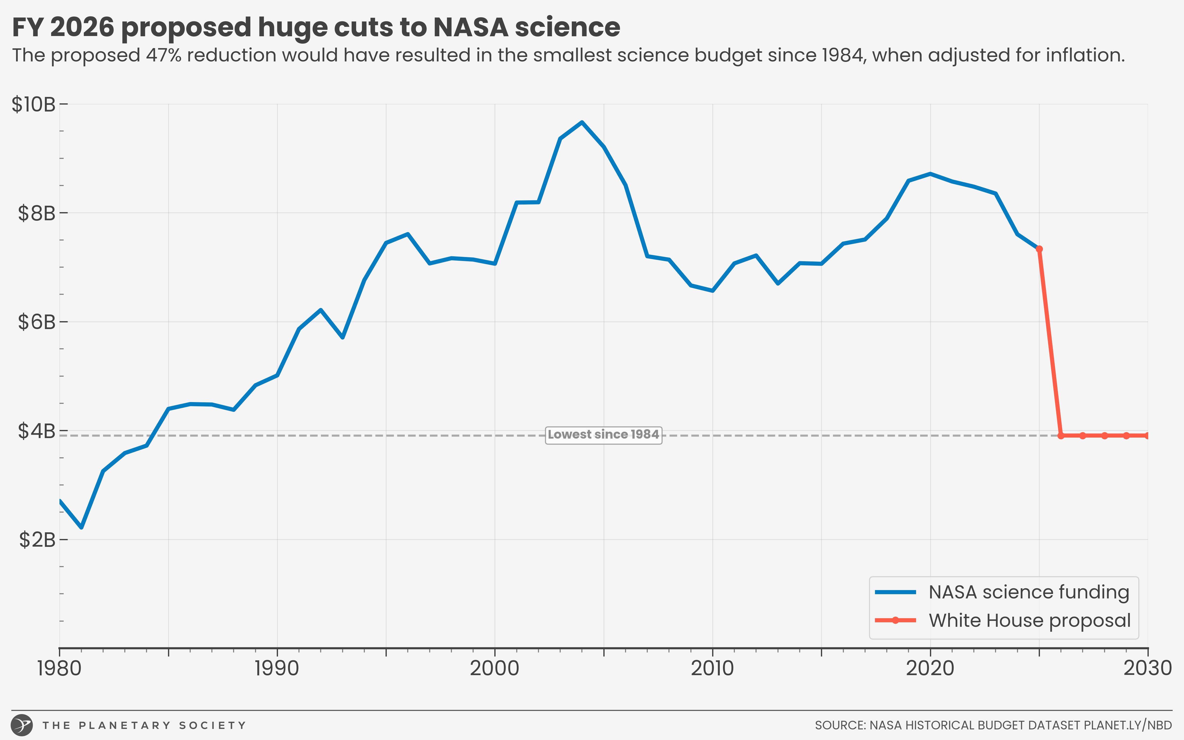 The White House's fiscal year (FY) 2026 budget proposal for NASA represents a historic threat to the space agency. That's not hyperbole: we have the data to prove it.